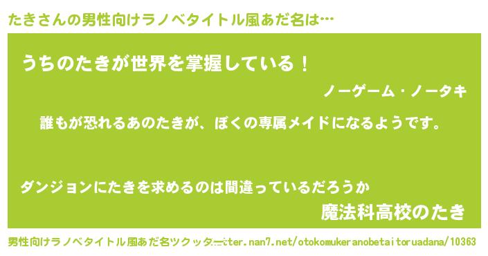| 市区町村名 | 『たき覇市』『たき田谷区』 |