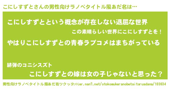 | 女子向けラノベタイトル風あだ名 | 『こにしすずとの雑貨屋さん』 |