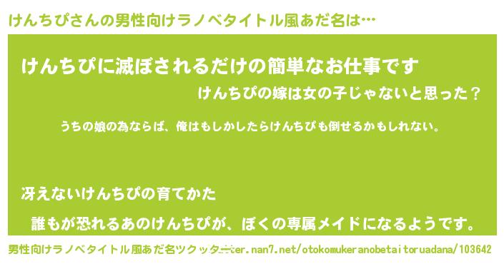 | 女子向けラノベタイトル風あだ名 | 『けんちぴの婚約者』 |