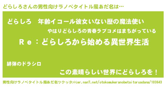 | 意味不明あだ名 | 『自称どらしろ』『ヨモギ科どらしろ属』 |