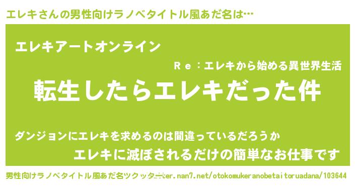 | 料理風あだ名 | 『エレキごはん』『エレキの豆乳スープ』 |