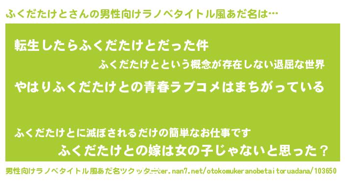 | 女子向けラノベタイトル風あだ名 | 『ふくだたけとの雑貨屋さん』 |