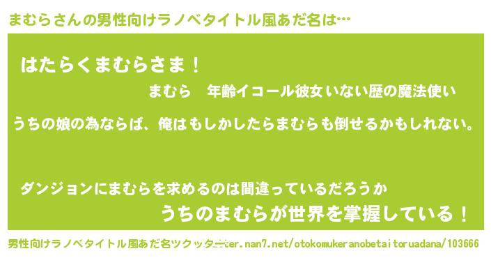 | 女子向けラノベタイトル風あだ名 | 『まむらの婚約者』『まむらは平凡を望む』 |