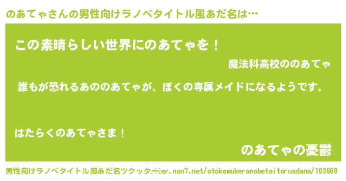 | 女子向けラノベタイトル風あだ名 | 『異世界でカフェのあてゃを開店しました。』 |