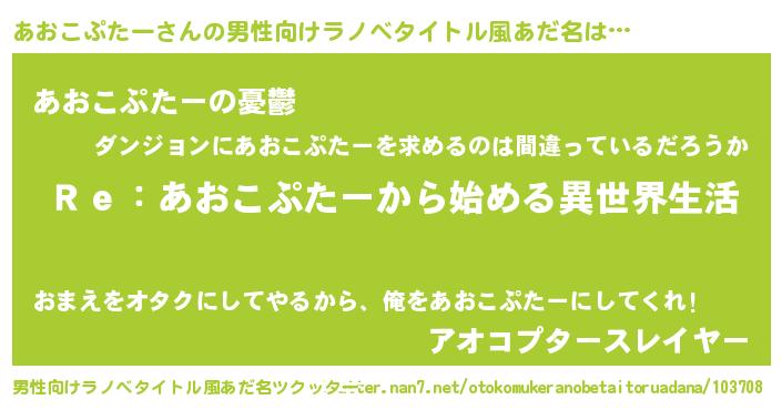 | 意味不明あだ名 | 『自称あおこぷたー』 |