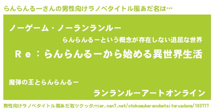 | 意味不明あだ名 | 『自称らんらんるー』 |