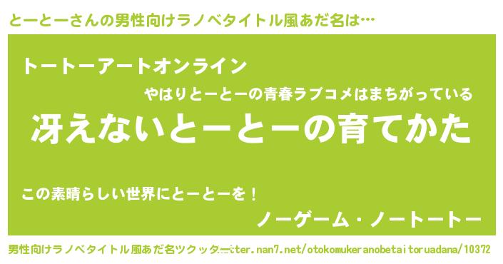 | 女子向けラノベタイトル風あだ名 | 『男装とーとーの憂鬱な任務』 |