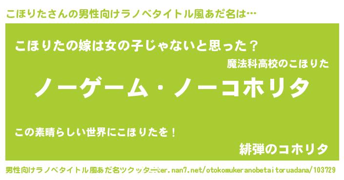 | 女子向けラノベタイトル風あだ名 | 『死神こほりたの再婚』 |