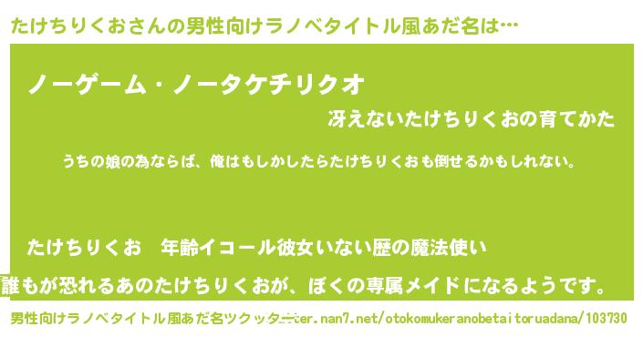 | ファンタジー風あだ名 | 『エターナルタケチリクオー』 |