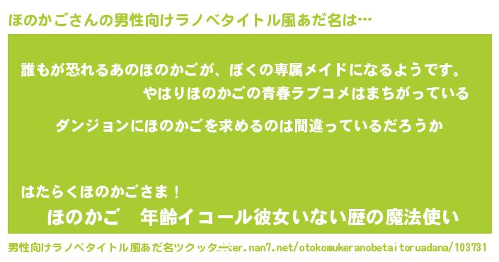 | 女子向けラノベタイトル風あだ名 | 『ほのかごは平凡を望む』 |