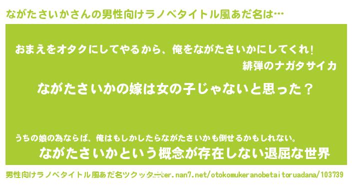 | 女子向けラノベタイトル風あだ名 | 『ながたさいか様がみてる』 |