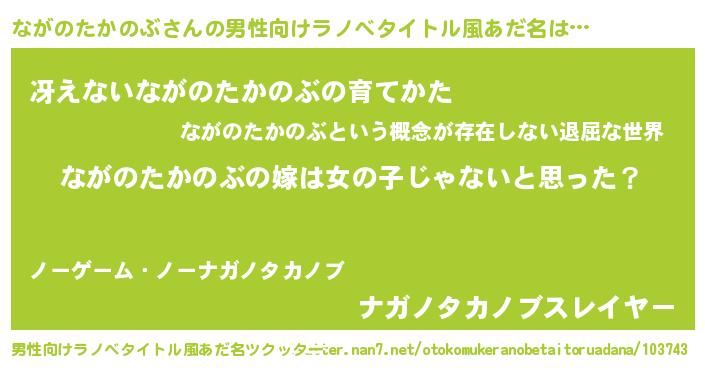 | ヘコむあだ名 | 『ながを』『ながのたかのぶ(震え声)』 |
