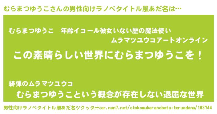 | 女子向けラノベタイトル風あだ名 | 『悪役むらまつゆうこに転生したようですが、知った事ではありません』 |