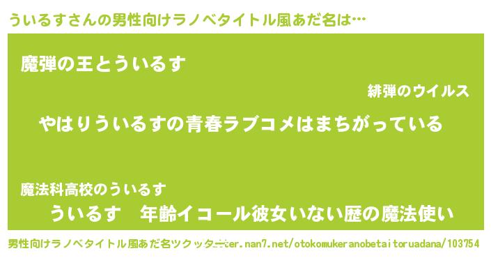 | 意味不明あだ名 | 『ういるすフォーエバー』『自称ういるす』 |