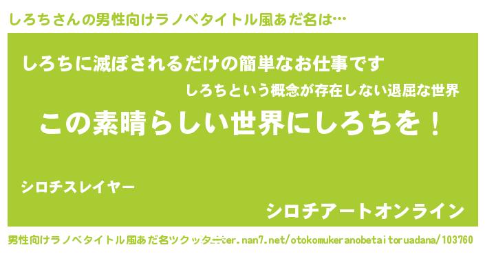 | 女子向けラノベタイトル風あだ名 | 『悪役しろちに転生したようですが、知った事ではありません』 |