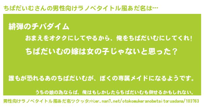 | 女子向けラノベタイトル風あだ名 | 『ちばだいむの卵を拾いまして』 |