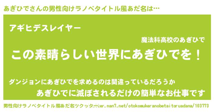 | 女子向けラノベタイトル風あだ名 | 『乙女ゲームの破滅フラグしかない悪役あぎひでに転生してしまった…』 |