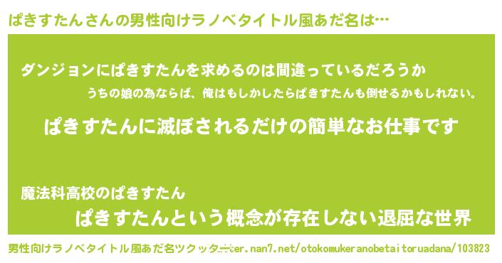 | 胡散臭い通販商品みたいなあだ名 | 『伝統あるサプリメント…その名も「ぱきすたん」』 |