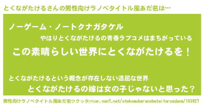 | 意味不明あだ名 | 『住所不定無職とくながたける(89歳)』 |