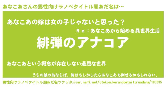 | 意味不明あだ名 | 『とにかく怪しいあなこあ』 |