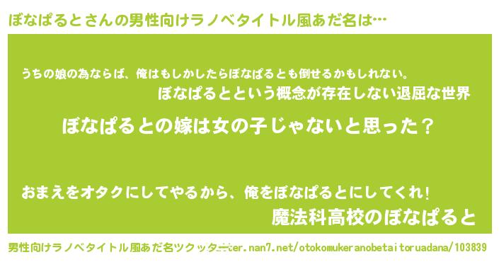 | 女子向けラノベタイトル風あだ名 | 『ぼなぱると様がみてる』 |
