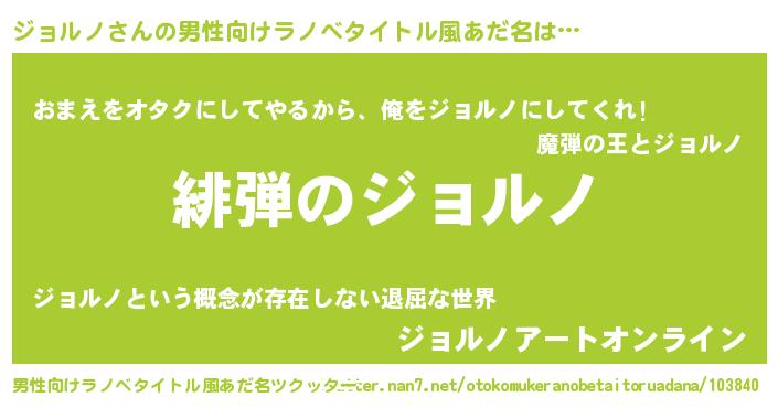 | ヒーロー風カッコイイあだ名 | 『正義の使者ジョルノ』『仮面ジョダー』 |