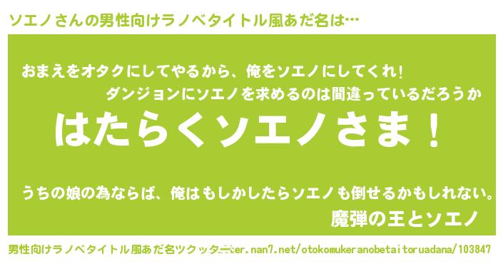 | ヒーロー風カッコイイあだ名 | 『正義の使者ソエノ』『仮面ソエダー』 |