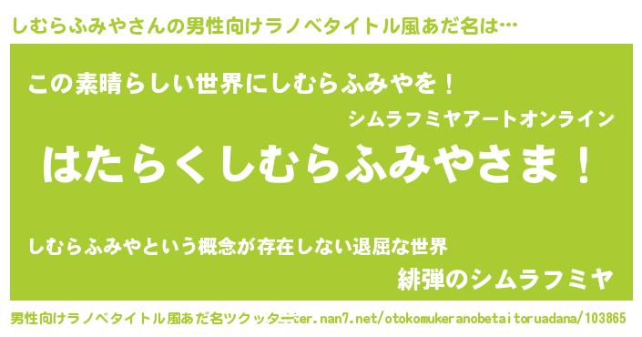 | ヘコむあだ名 | 『しむにー』『しむらふみや(小並感)』 |
