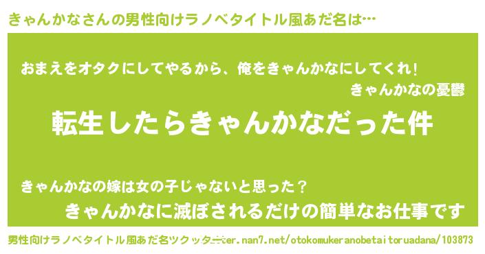 | ヒーロー風カッコイイあだ名 | 『愛の使者きゃんかな』『炎刃騎士キャ』 |