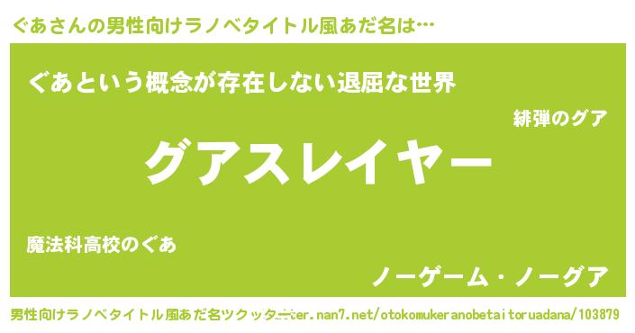 | ヘコむあだ名 | 『ぐあ(震え声)』『豆乳』『ぐあ太郎』 |
