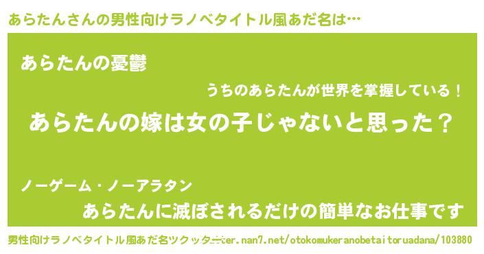 | 女子向けラノベタイトル風あだ名 | 『あらたん様がみてる』『あらたん恋絵巻』 |