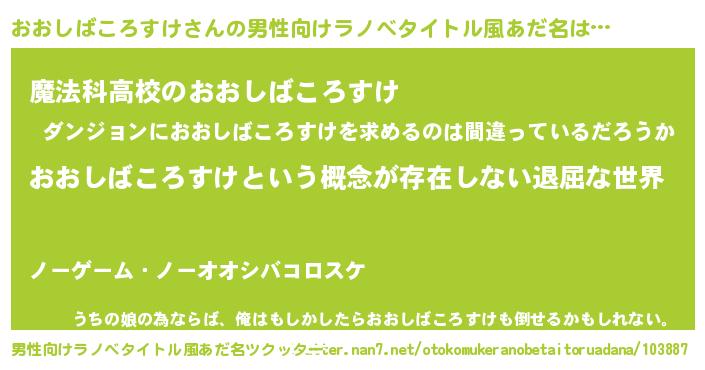 | 意味不明あだ名 | 『永久保存おおしばころすけ』 |