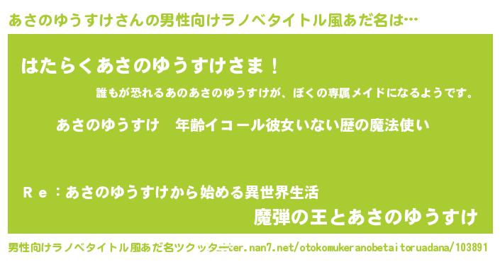 | ファンタジー風あだ名 | 『ユリアサヴァット』『ヴァルアサーナ』 |