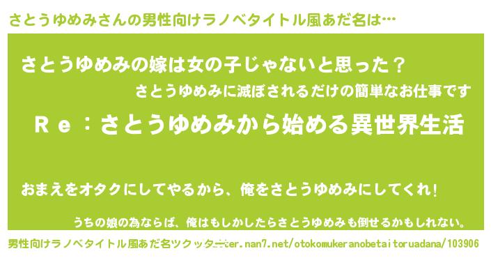 | 意味不明あだ名 | 『自称さとうゆめみ』 |
