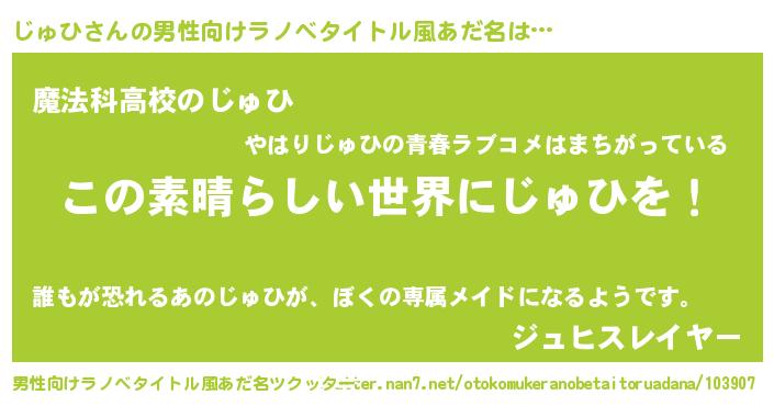 | ヒーロー風カッコイイあだ名 | 『仮面ジュダー』『超時空戦士ジュヒ』 |