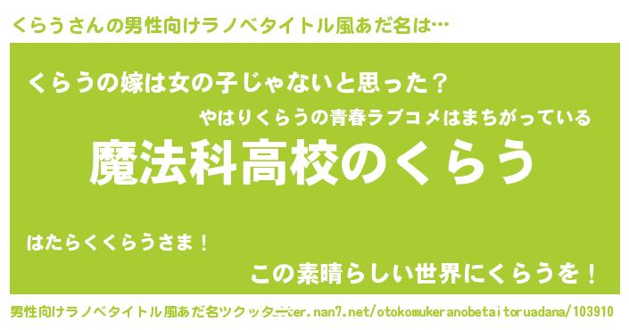 | 胡散臭い通販商品みたいなあだ名 | 『ガンによく効く高麗人参…その名も「くらう」』 |