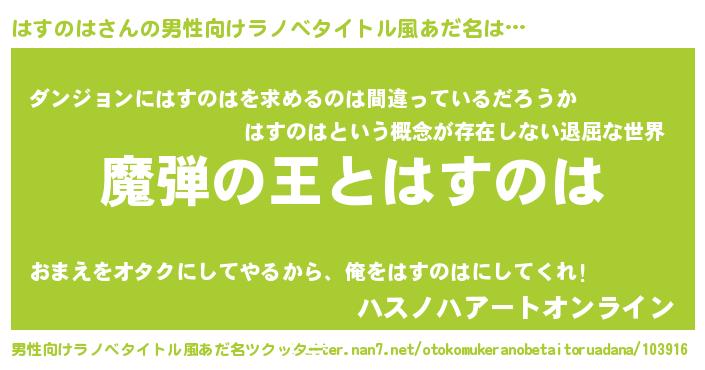 | 女子向けラノベタイトル風あだ名 | 『乙女ゲームの破滅フラグしかない悪役はすのはに転生してしまった…』 |