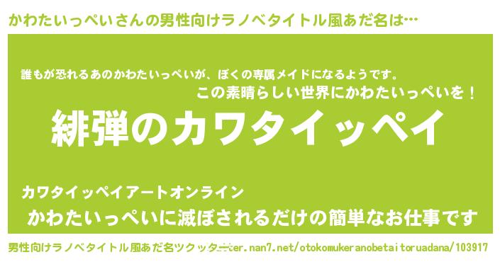 | 胡散臭い通販商品みたいなあだ名 | 『絶対に幸福をもたらす健康食品…その名も「かわたいっぺい」』 |