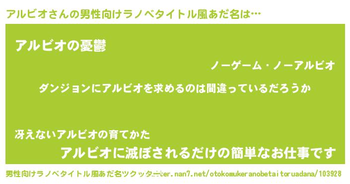 | 女子向けラノベタイトル風あだ名 | 『アルビオは平凡を望む』 |