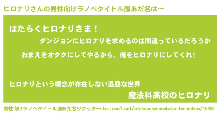 | 女子向けラノベタイトル風あだ名 | 『ヒロナリ恋絵巻』『ヒロナリの契約王妃』 |