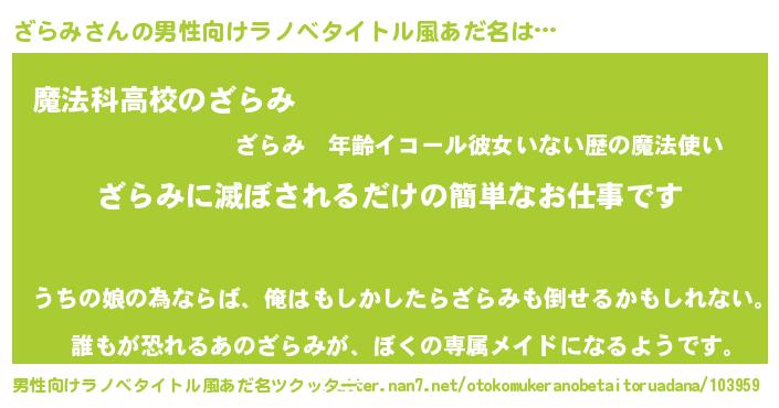 | 意味不明あだ名 | 『自称ざらみ』『永久保存ざらみ』 |