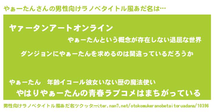 | 女子向けラノベタイトル風あだ名 | 『やぁーたんは平凡を望む』 |