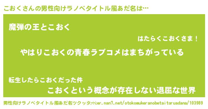 | 女子向けラノベタイトル風あだ名 | 『こおくの雑貨屋さん』 |