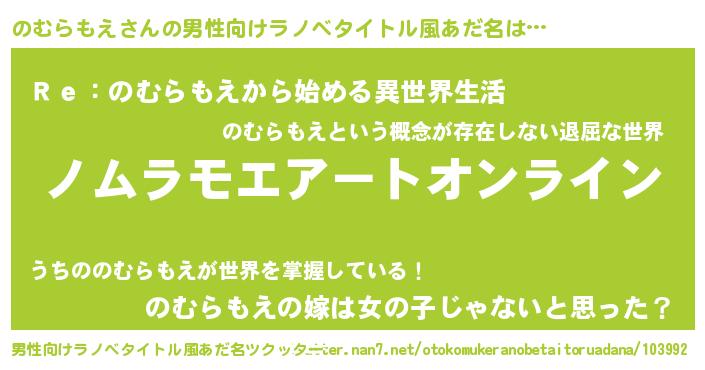 | 女子向けラノベタイトル風あだ名 | 『のむらもえ姫と円卓の騎士』 |