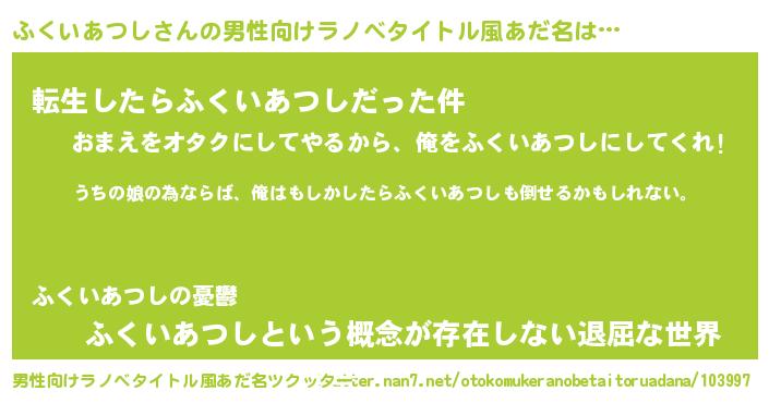 | 女子向けラノベタイトル風あだ名 | 『ふくいあつしの婚約者』 |