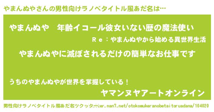 | 胡散臭い通販商品みたいなあだ名 | 『モテモテ間違いなしブレスレット…その名も「やまんぬや」』 |