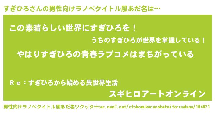 | 女子向けラノベタイトル風あだ名 | 『すぎひろ伯爵の花嫁』『闇のすぎひろ』 |