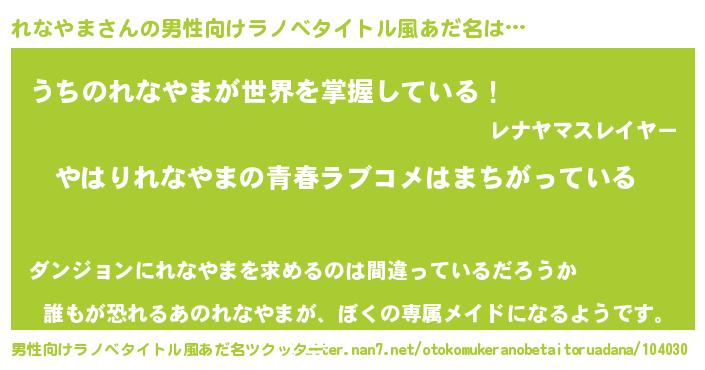 れなやまさんの男性向けラノベタイトル風あだ名をツクッター!