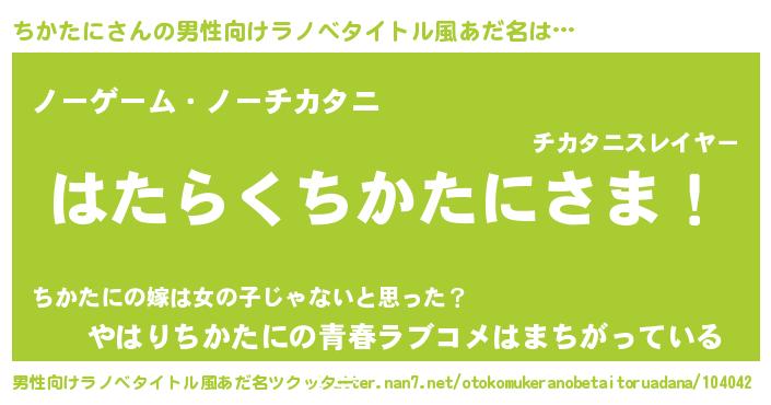 | ヒーロー風カッコイイあだ名 | 『正義の使者ちかたに』『黄金騎士チカ』 |