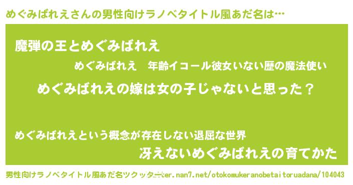 | 女子向けラノベタイトル風あだ名 | 『めぐみばれえ様がみてる』 |